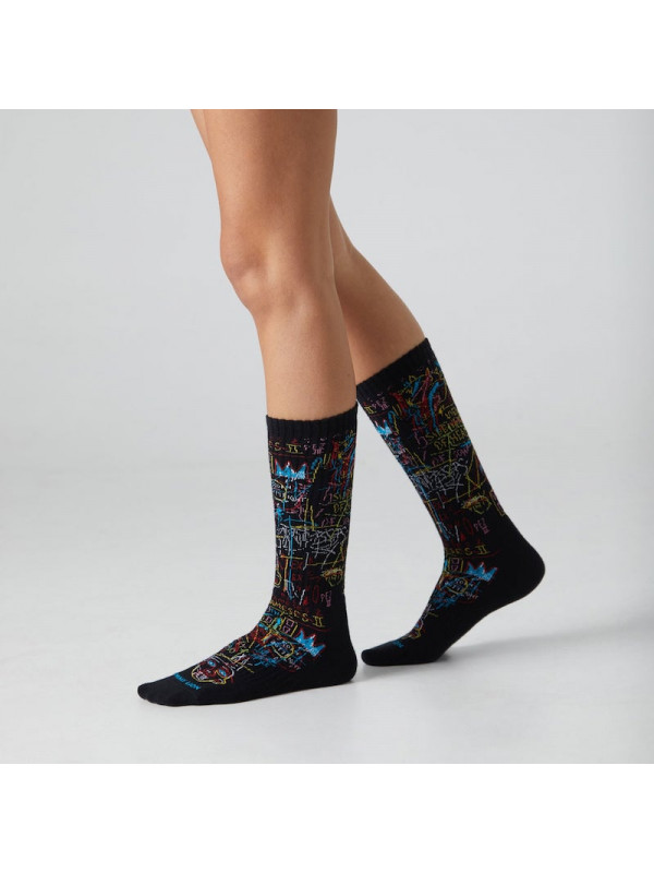 Al igual que Jean-Michel Basquiat es considerado el precursor del arte abstracto contemporáneo, con estos calcetines deportivos... ¡tú serás el rey de la moda urbana! Y no solo porque lleves en tu día a día uno de los iconos más emblemáticos del popular artista, la corona de tres puntas, sino también porque dará a tus looks un toque único y rompedor.