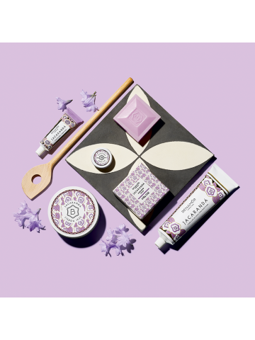 Jacarandá debe su nombre al emblemático árbol de Lisboa que cubre la ciudad con sus flores lilas cada primavera. Enriquecidos con aloe vera orgánico y esencia floral, estos tratamientos corporales calmantes calman, hidratan y refrescan la piel con un adictivo aroma floral