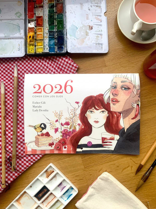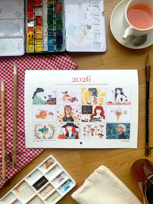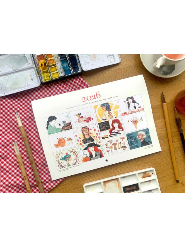 En esta ocasión Esther Gili, Marialu Gili y Lady Desidia se han unido para crear juntas un precioso calendario con 12 bonitas ilustraciones para el 2026. Cada una de estas 3 geniales ilustradoras se ha encargado de ilustrar cuatro de los meses del año siguiendo una temática en común que inspira a las tres: la comida.