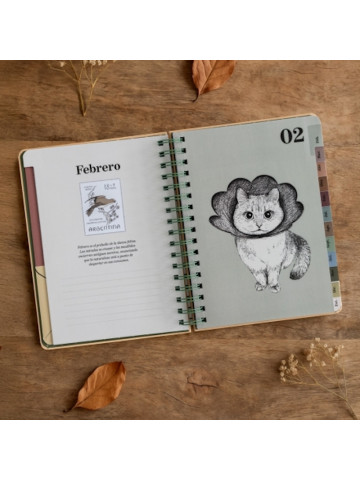 La agenda ilustrada por Laura Agustí es una obra de arte que te encantará. La pintora e ilustradora tiene una fascinación por los gatos y los representa a través de su estilo puntillista, capturando su esencia y personalidad en cada ilustración.