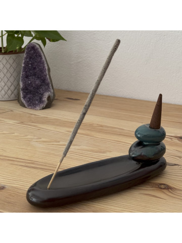 Este modelo Guijarros Zen es más grande y alargado que su hermano pequeño, pero también es muy compacto, por lo que puedes colocarlo fácilmente en espacios pequeños para quemar incienso durante tus prácticas de Yoga, meditaciones o simplemente para perfumar tu hogar con los mejores inciensos.
