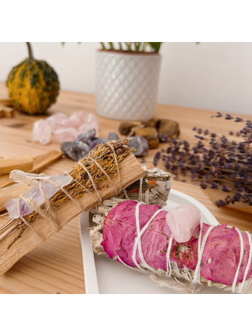 Realizaremos nuestro propio SAHUMERIO, un atado con hierbas purificadoras y palo santo para que puedas limpiar, purificar y llamar a las energías que necesitas.