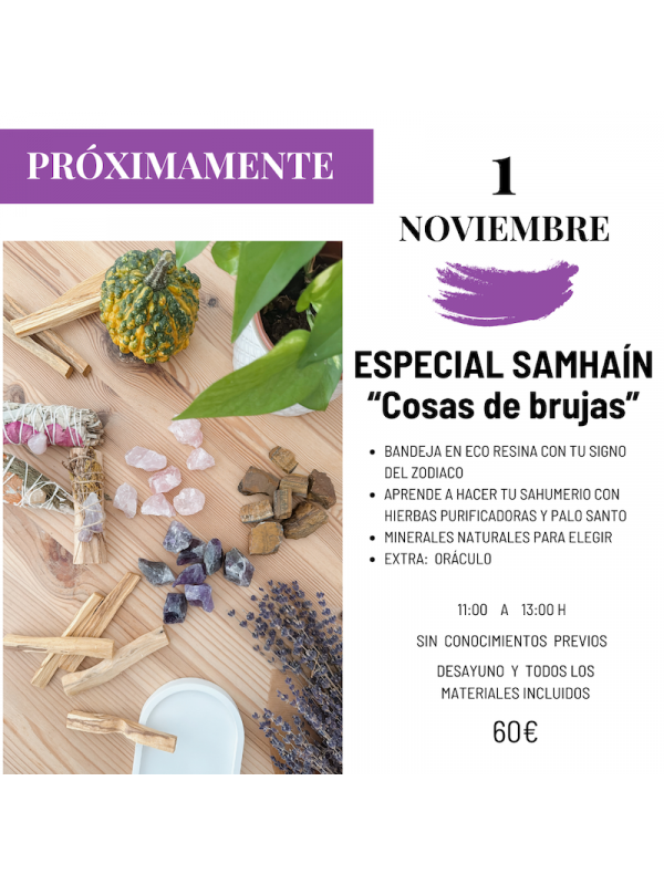 El SÁBADO 1 de NOVIEMBRE tenemos taller ESPECIAL SAMHAÍN "COSAS DE BRUJAS" en el que vamos a ayudarte a reconectar contigo misma, renovar y recargar energías. El taller está impartido por OFELIA, la diseñadora de joyas y artesana de Camaleónica Design. Con más de 10 años de experiencia impartiendo talleres te ayudará a hacer tu propio kit para Halloween / Samhaín y disfrutar de uno de los momentos más mágicos del año según la tradición celta. Será un taller muy especial de meditación y conexión contigo misma.