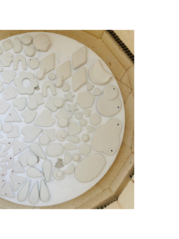 Las piezas irán esmaltadas en transparente brillo, cocidas a 1.220°C, y se entregarán tres semanas después de la realización del taller.