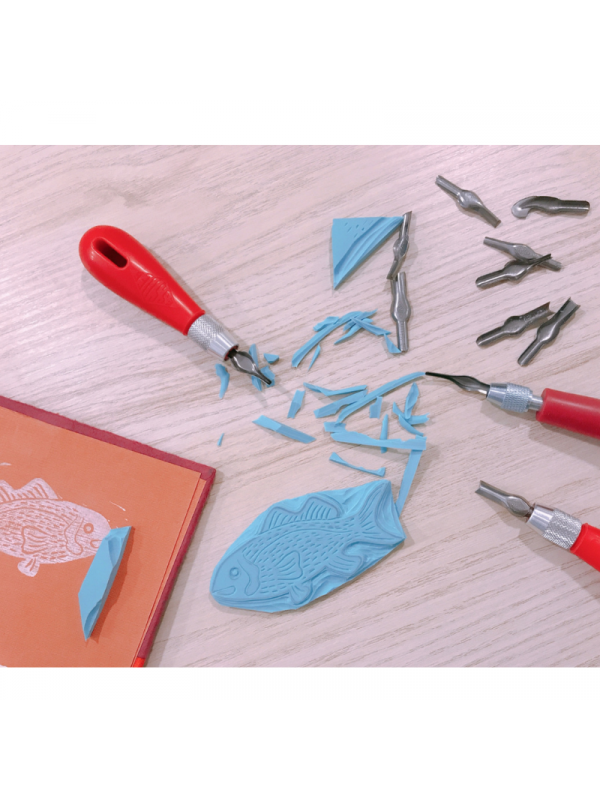 Carvado de Sellos: Aprenderás a usar las gubias para transformar un simple bloque de goma en tu propio sello personalizado.