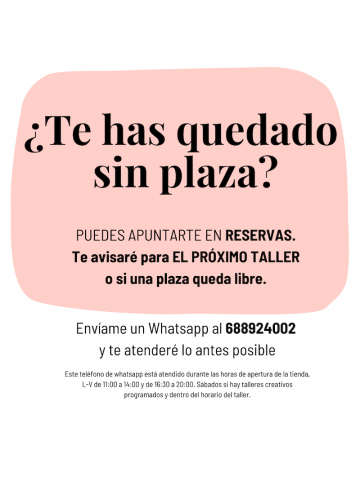 El precio completo del taller es de 70€, incluye todos los materiales necesarios + MERIENDA . PLAZAS LIMITADAS.