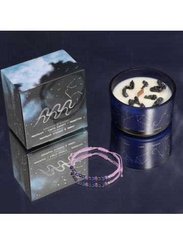Puedes complementar esta vela con otras velas que le van genial a este signo como: Vela de Amatista y Lavanda, Citrino y Sodalita, Cuarzo rosa y Rosas.
