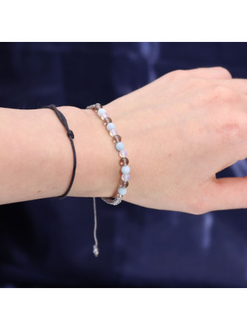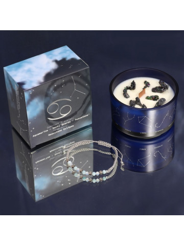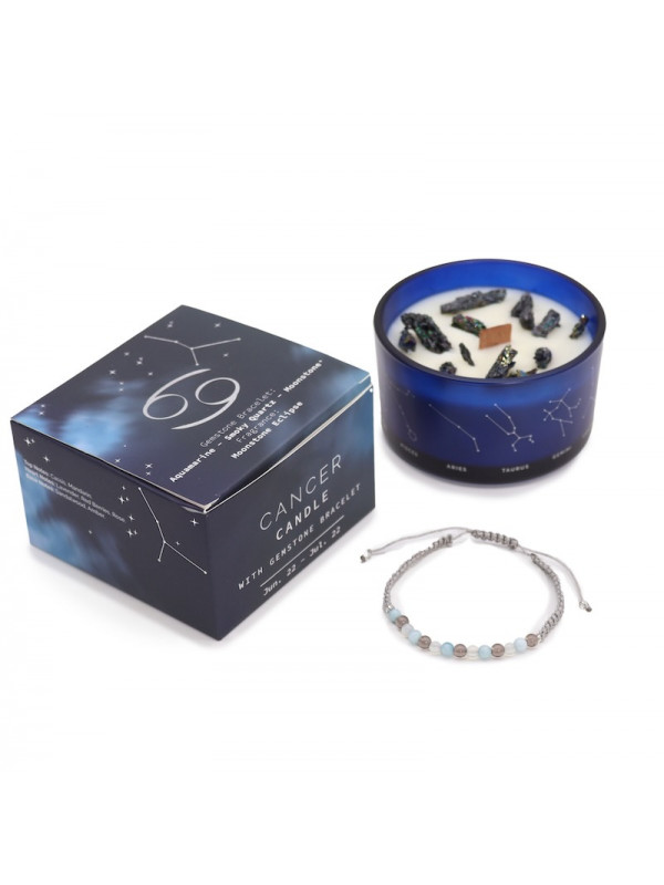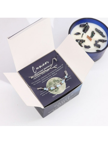 Viene acompañada de una pulsera con los minerales más afines al signo: Aguamarina, Cuarzo Ahumado y Piedra Luna.